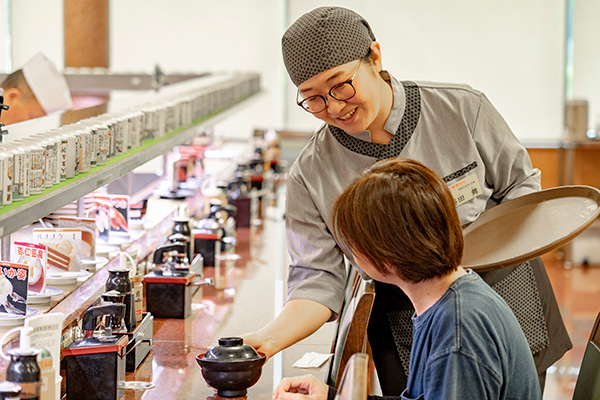 すし職人を目指す方は全くの調理未経験者でも、一から丁寧に指導いたします。お客様と接しながら調理をするすし職人は、調理技術だけでなく接客スキルも重要なため、ホール業務なども経験しながら総合的なスキルを磨いていただきます。