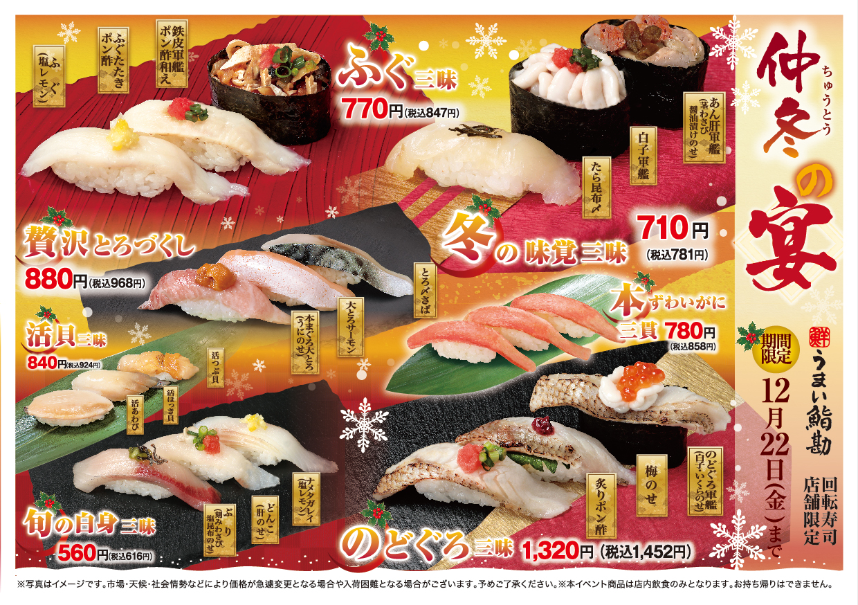 いよいよ冬本番!今月もうまい寿司ネタを取り揃えております。