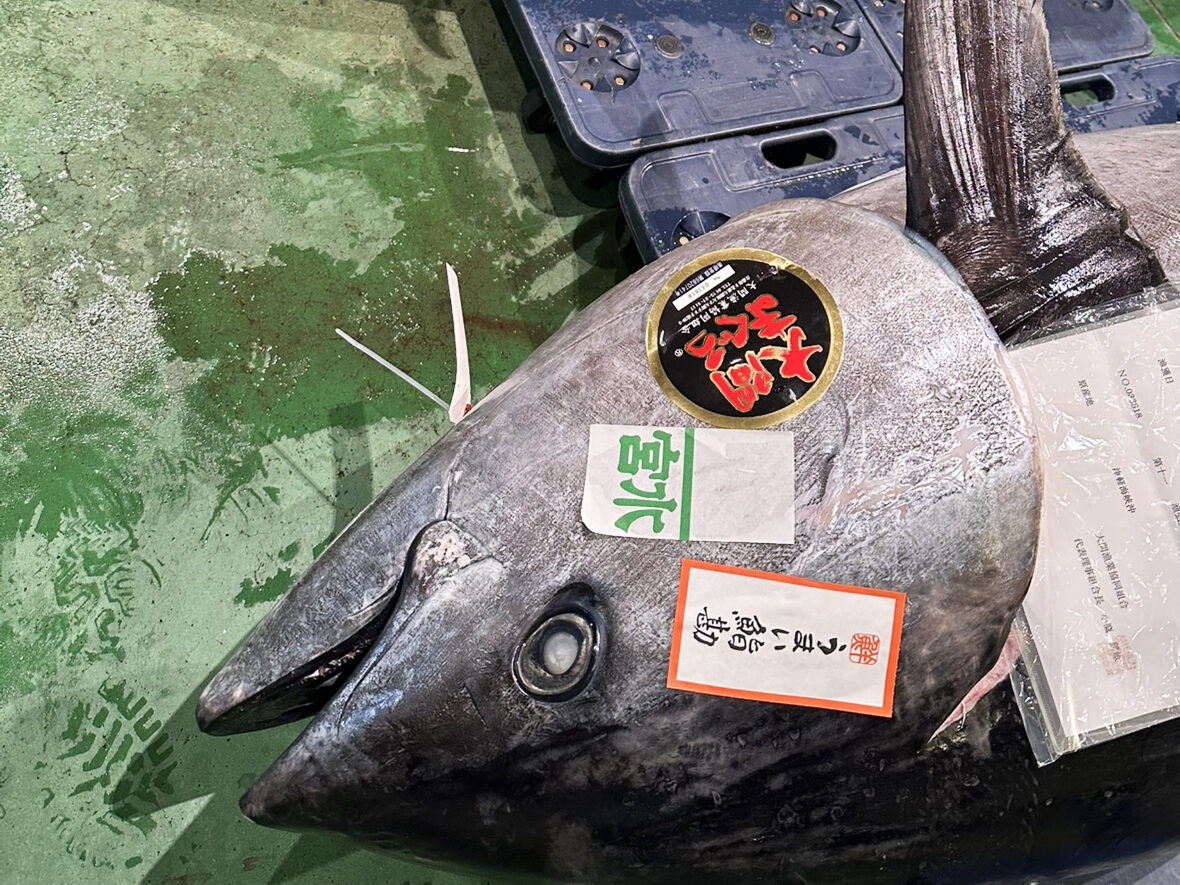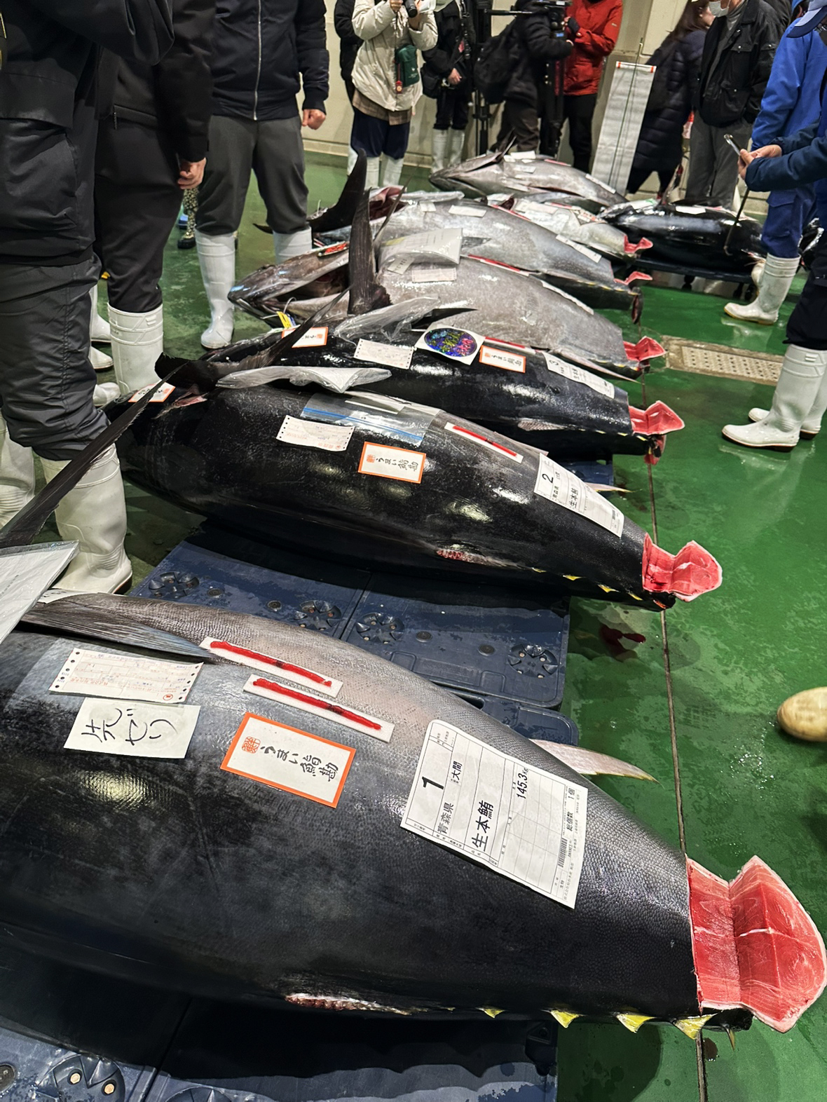 青森県大間産の天然本まぐろを3本競り落としました。1番まぐろの重さおおよそ145.3キロ!